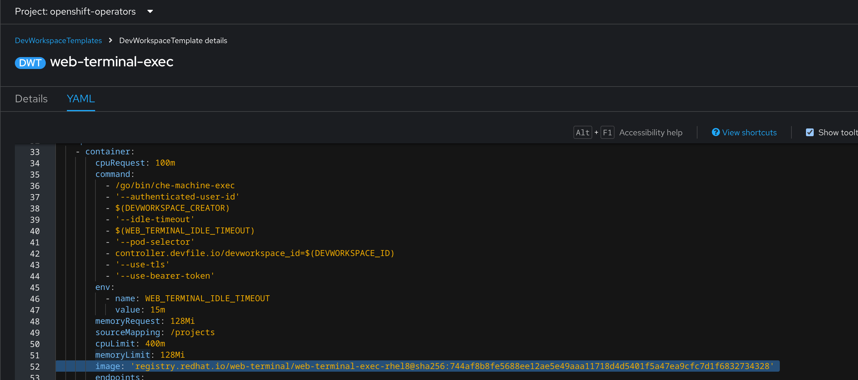 ERROR: error loading openshift command line terminal: Failed to proxy request https://workspace6d4297a58da04c94-service.openshift-terminal.svc:4444/exec/init local error: tls: bad record MAC" error